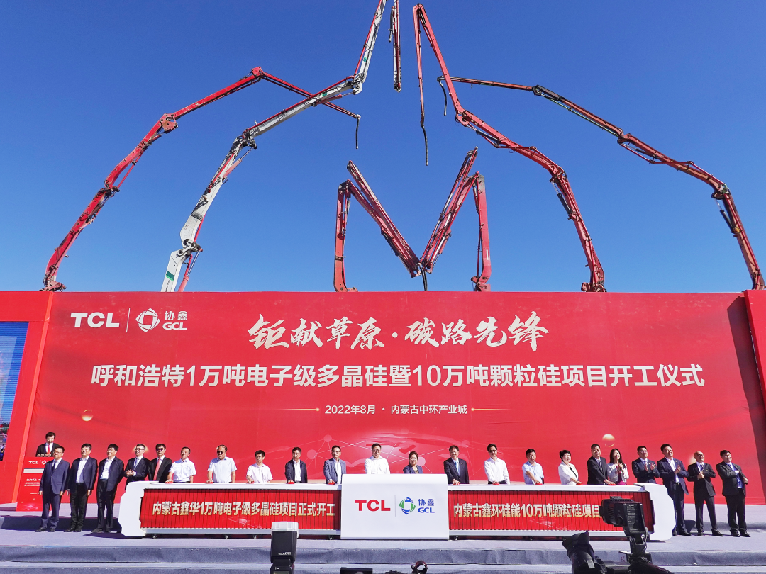 8月24日,內(nèi)蒙古中環(huán)產(chǎn)業(yè)城1萬(wàn)噸電子級(jí)多晶硅暨10萬(wàn)噸顆粒硅項(xiàng)目開(kāi)工儀式隆重舉行。內(nèi)蒙古自治區(qū)黨委常委、呼和浩特市委書(shū)記包鋼,內(nèi)蒙古自治區(qū)副主席艾麗華,呼和浩特市委副書(shū)記、市長(zhǎng)賀海東等自治區(qū)、呼和浩特市相關(guān)領(lǐng)導(dǎo),TCL 創(chuàng)始人、董事長(zhǎng)李東生,協(xié)鑫集團(tuán)董事長(zhǎng)朱共山,TCL中環(huán)總經(jīng)理沈浩平等出席開(kāi)工儀式,為項(xiàng)目培土奠基。